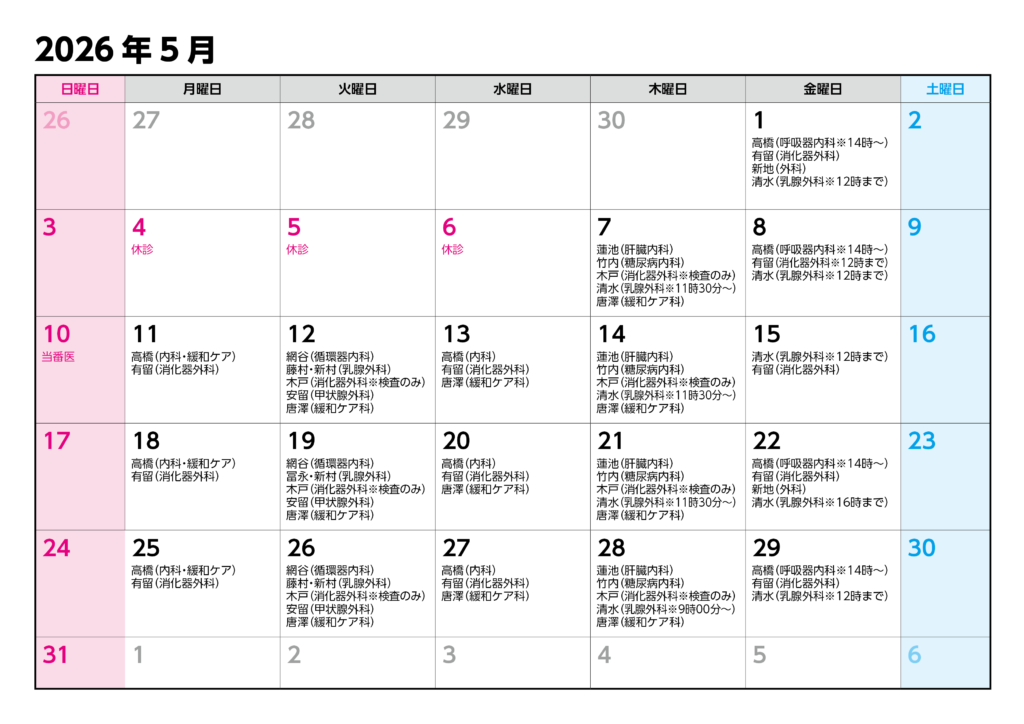 | 科目 | 担当医 | 月 | 火 | 水 | 木 | 金 | |